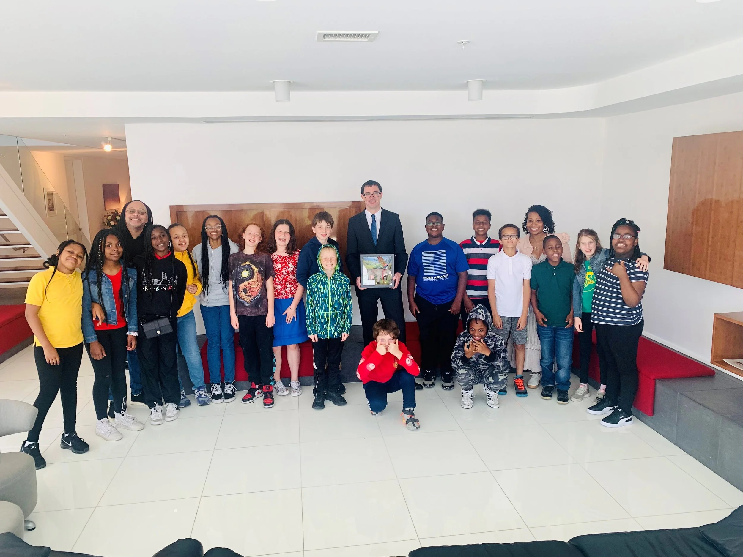 On May 30, Ludlow-Taylor Elementary School's 5th graders from Washington, DC had the opportunity to visit the Embassy of Liechtenstein as part of the Embassy Adoption Program. Over the course of several weeks, the students had been learning about Liechtenstein, and they were excited to present their knowledge to the Ambassador and the embassy staff.
