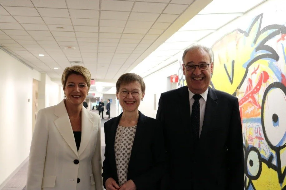 Prime Minister Brigitte Haas with Swiss President Karin Keller-Sutter and Swiss Minister of Economics, Federal Counselor Guy Parmelin.